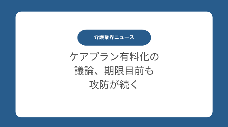 現在は“利用者負担ゼロ”であるケアマネジメントへの自己負担導入を巡る議論が、大詰めを迎えています。