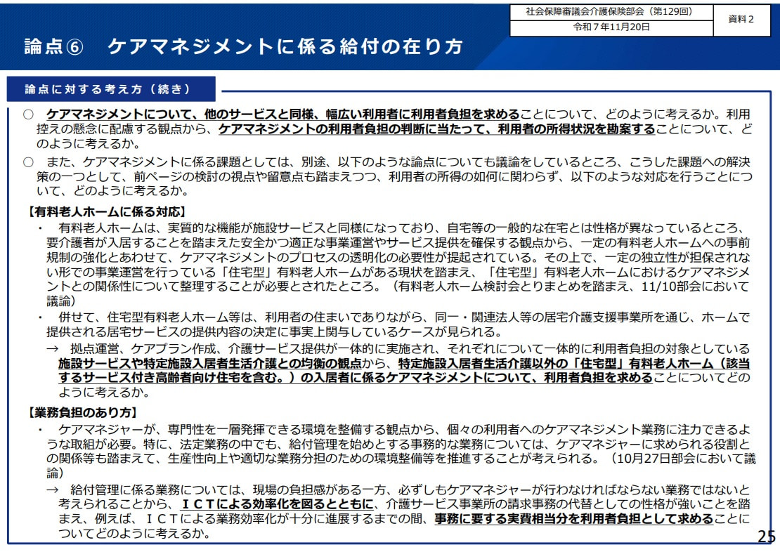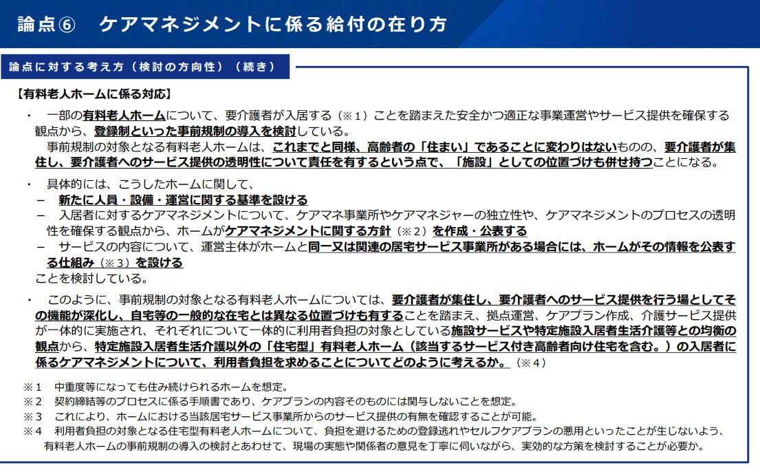 住宅型有老は“一般的な在宅とは異なる”ケアプランの有料化案の根拠と方向性