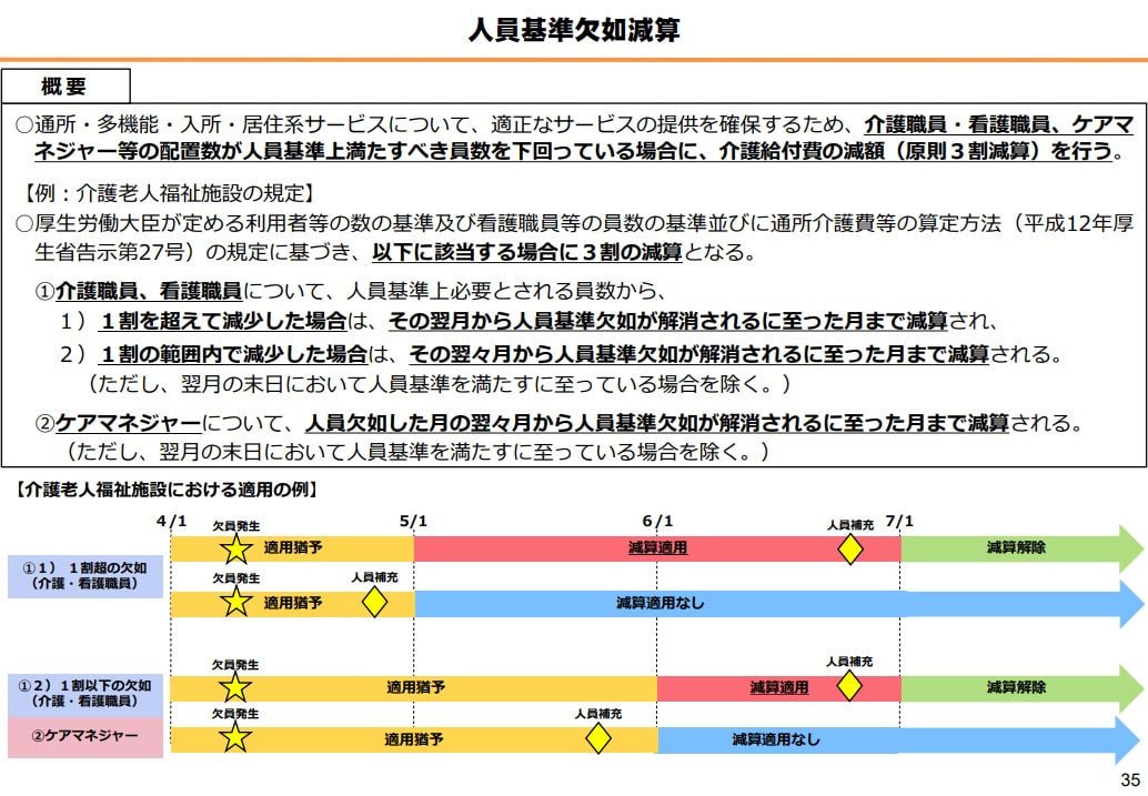 今回、厚労省は直接的な賃上げ策だけでなく、基本報酬が3割減算となる人員基準欠如減算を緩和する案を示しました。