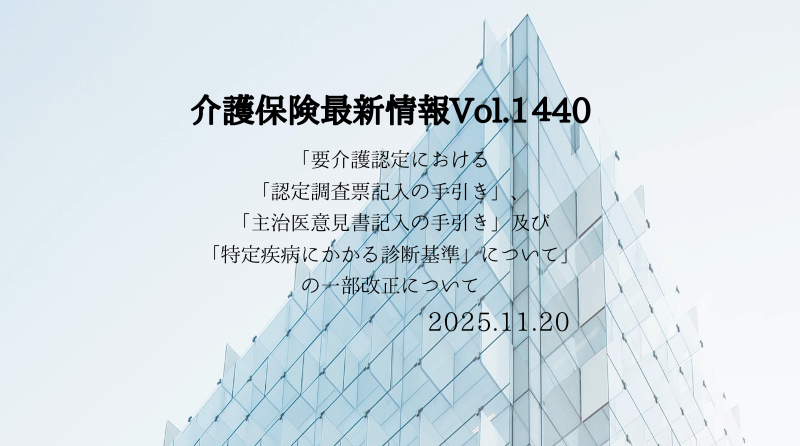vol.1440「要介護認定における「認定調査票記入の手引き」、「主治医意見書記入の手引き」及び「特定疾病にかかる診断基準」について」の一部改正について